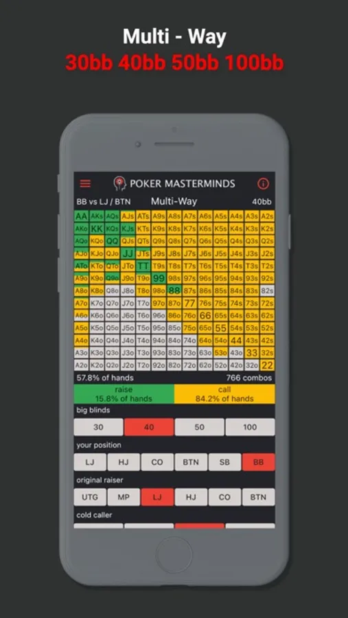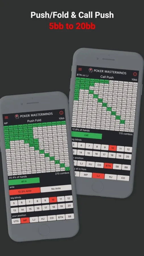 The Preflop Advantage was built for and by professional tournament players. We believe our app is the best preflop poker trainer on the market and at an affordable price. The app is easy to navigate and read, making it the perfect tool so you can check your ranges while you're playing (please make sure your room allows players to use charts).