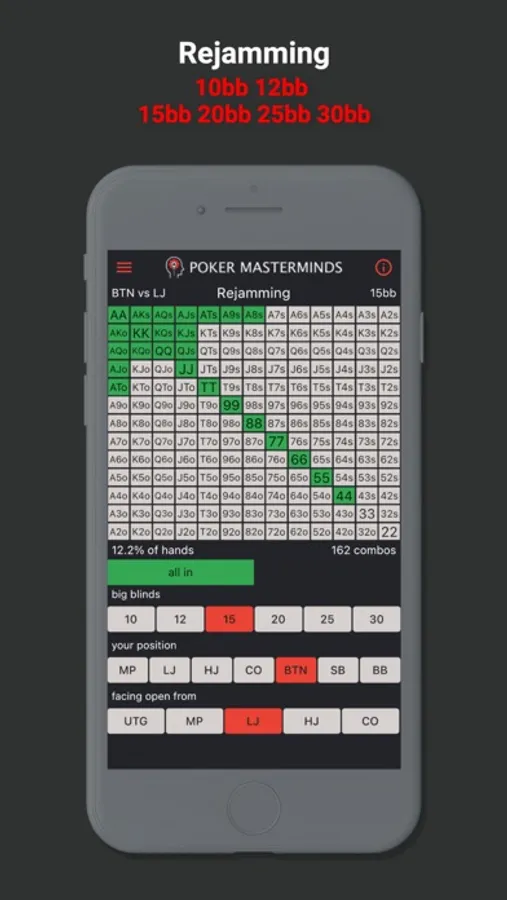 - Rejamming - 10bb, 12bb, 15bb, 20bb, 25bb, 30bb