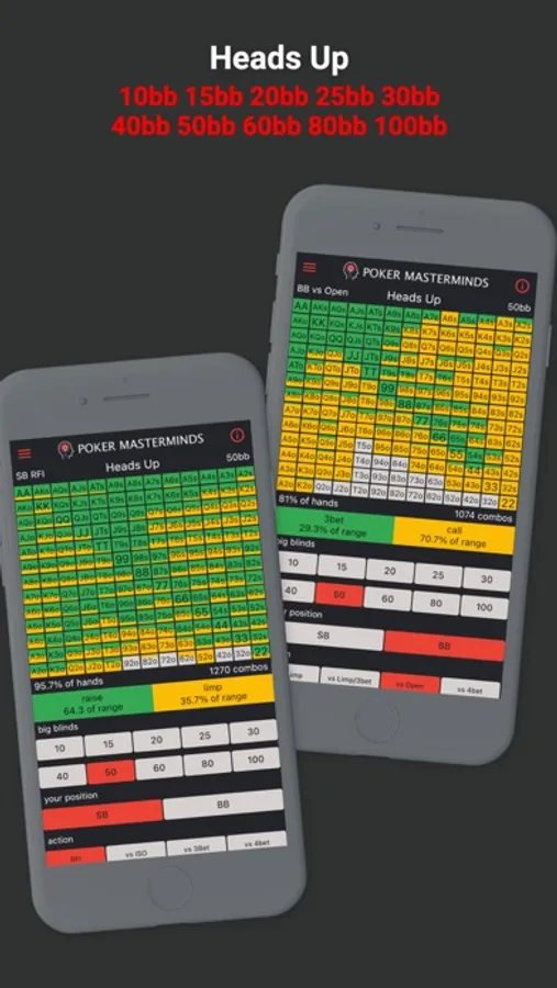 - Heads Up - 10bb, 15bb, 20bb, 25bb, 30bb, 40bb, 50bb, 60bb, 80bb, 100bb