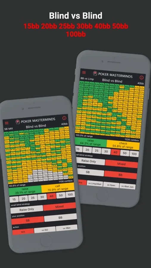- Blind vs Blind - 15bb, 20bb, 25bb, 30bb, 40bb, 50bb, 100bb