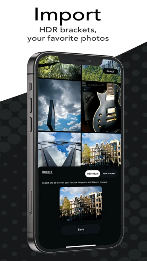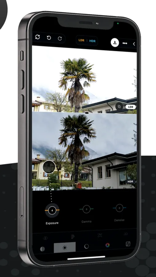 • Edit LDRs while checking real-time how it impacts the final HDR photo.