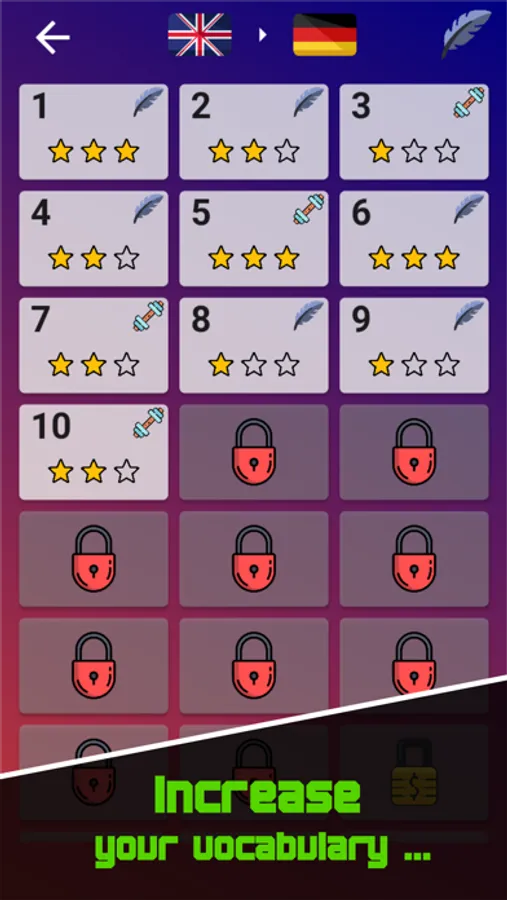 Refresh and increase your vocabulary in the levelling mode, which includes hundreds of units that increase in difficulty.