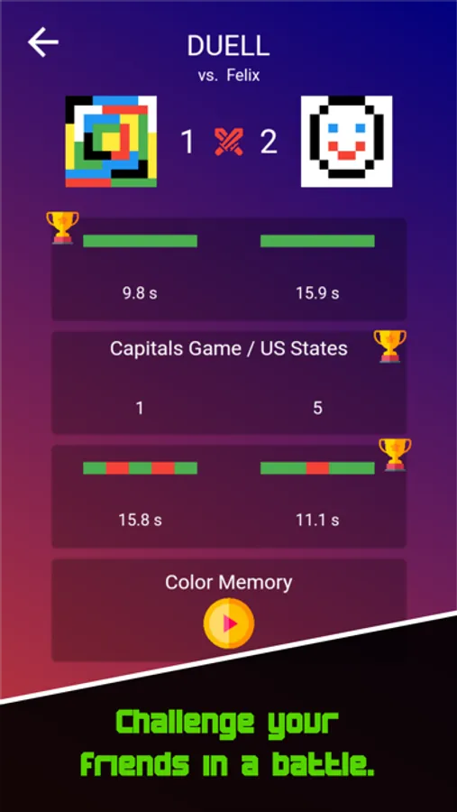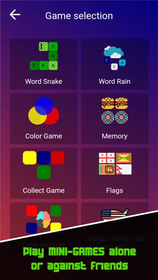 Invite your friends and prove your abilities in a battle, competing in a vocabulary quiz or mini game.