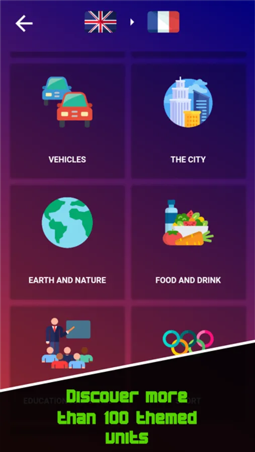 Play the predefined units, step by step, to refresh and improve your vocabulary