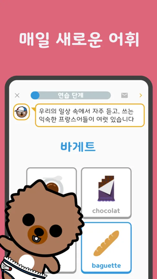 각 레슨마다 Simba가 여러분을 도와주어 프랑스어를 재밌고 빠르게 배울 수 있어요!