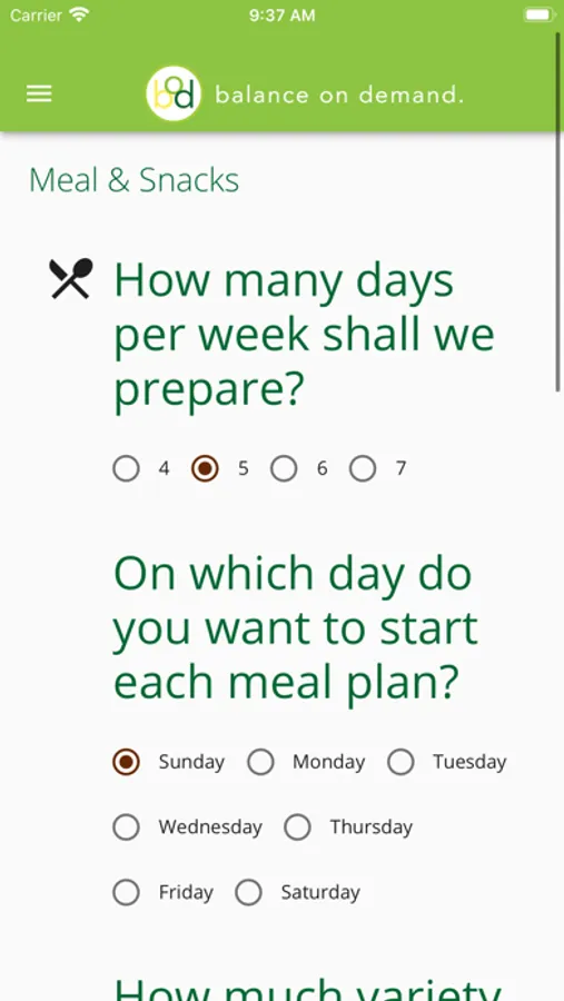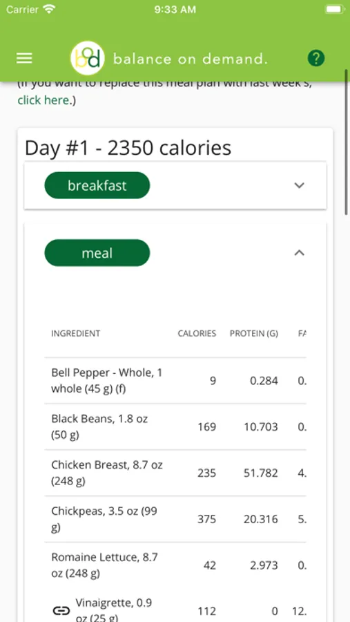 Balance on Demand helps you develop nutritious meal plans to achieve your health goals, whether that means losing some weight or adding muscle mass. After providing some information around your body metrics, lifestyle, and dietary preferences, the app calculates your daily caloric intake and macronutrient percentages that will be used to generate each week's meal plan. Then each week you'll get a new set of meals that match your profile, with as much or as little variety as you want. You can also view a grocery list of all ingredients for the week to make your shopping trip a bit more efficient, plus view a checklist of meal preparation steps if you prefer to make everything at once.