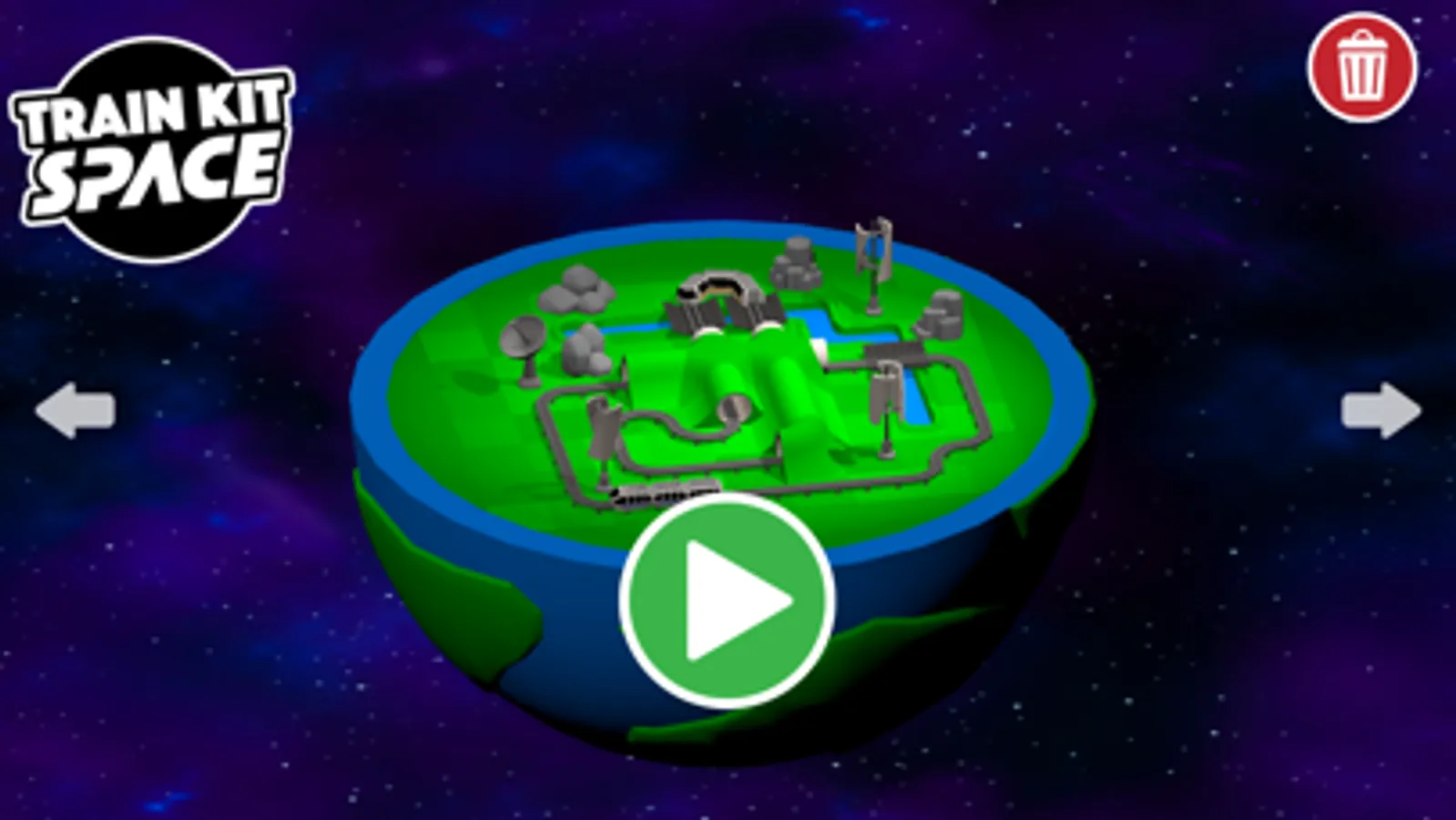 Choose a planet to colonise, and then start to build. Add straights, curves, tunnels, and bridges over craters. Switching tracks allow your trains to navigate around the space port you have created. Add your trains and continue to build as they whizz around the planet.