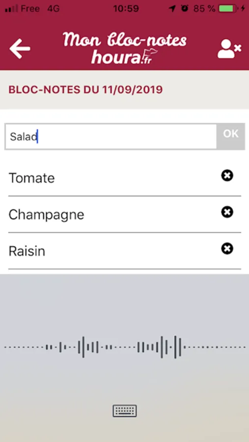 Vous pouvez également utiliser la saisie vocale pour rendre les courses encore plus rapides ! Il vous suffit simplement d'ajouter vos articles dans votre bloc-notes houra et de valider votre panier.