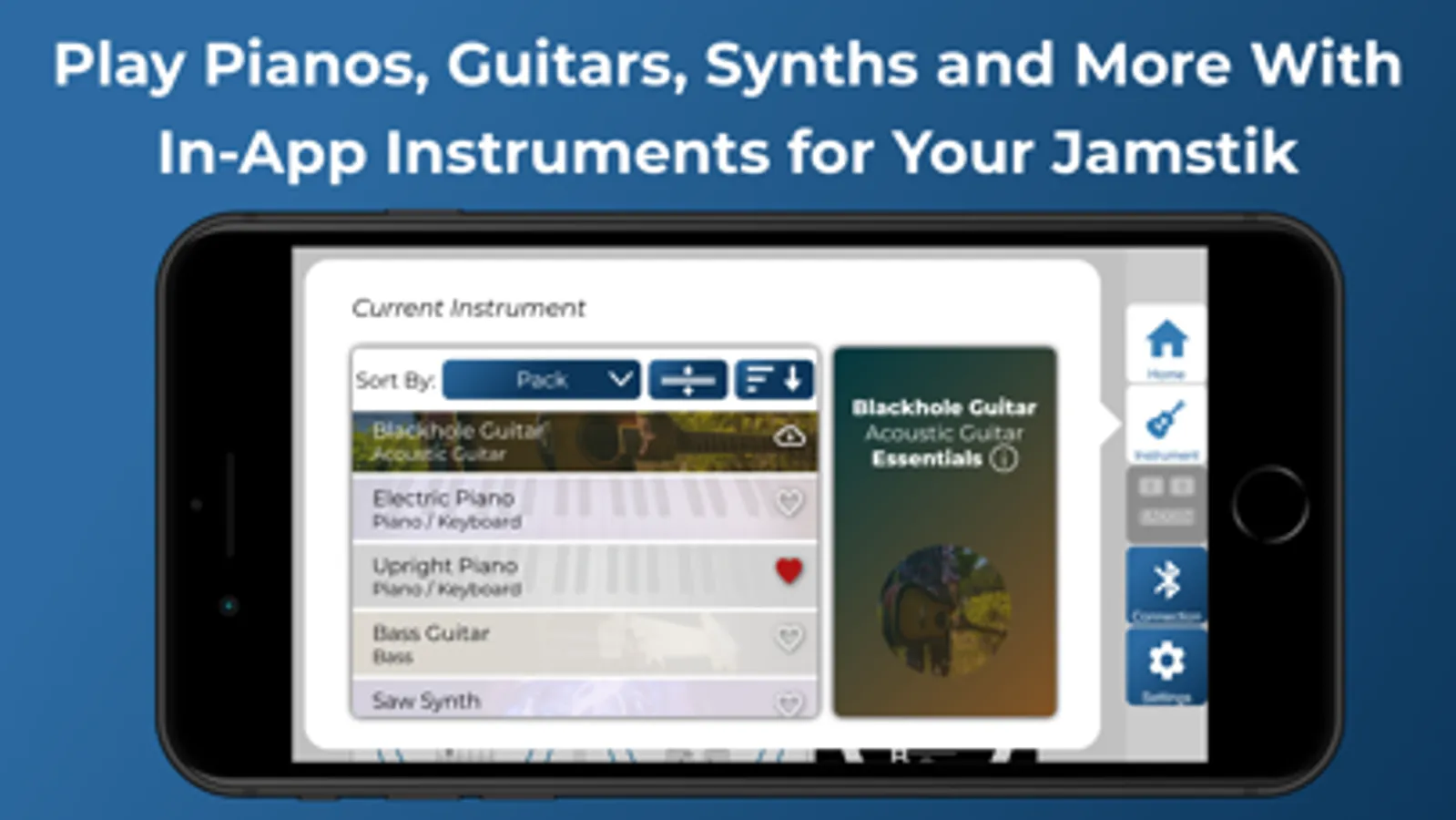The Jamstik connects wirelessly to iPad® iPhone® and Mac® and works with a multitude of music apps for beginners and pros alike. The Jamstik is more than a guitar. It’s also a MIDI controller, which means it can sound like almost any instrument you can think of.