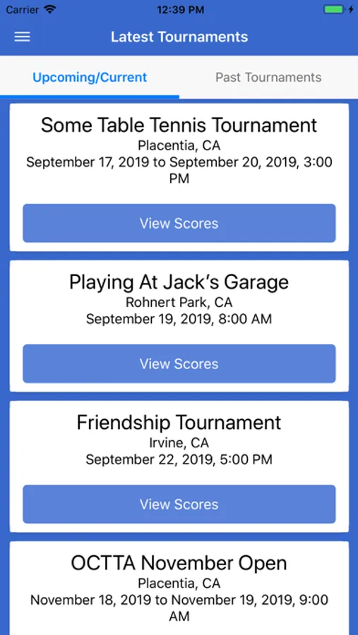 Singles, Doubles, and Team Tournament Scoreboards