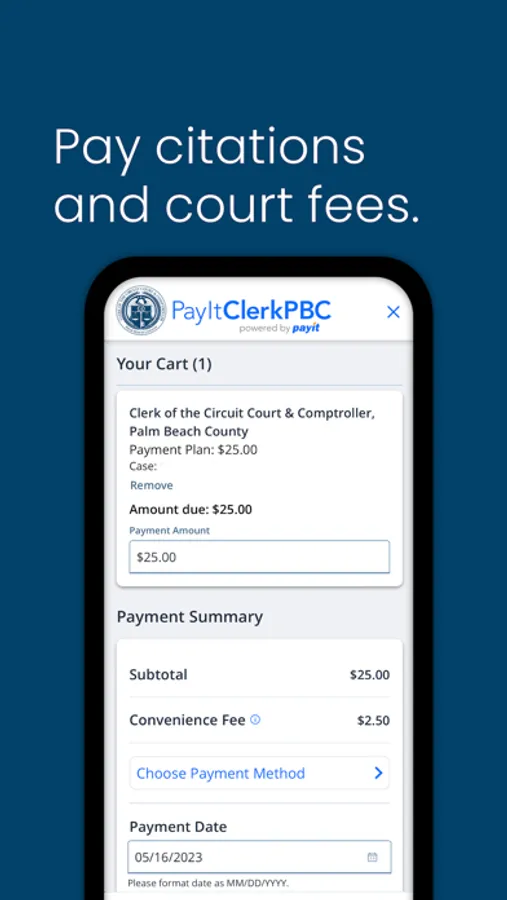 Quickly and securely search for and pay your citations. Get reminders for upcoming due dates and keep track of all your receipts with PayitClerkPBC.