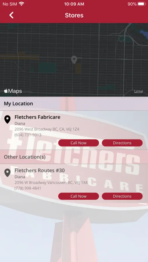 5) Quickly contact Fletchers Fabricare by phone or email and access their website all directly from your device.