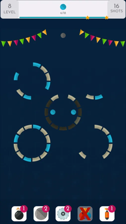 • A bomb can be detonated by any of the bricks and balls to make them blast off. Be sure to aim and double-click the bomb which pegs and balls you want blown up.