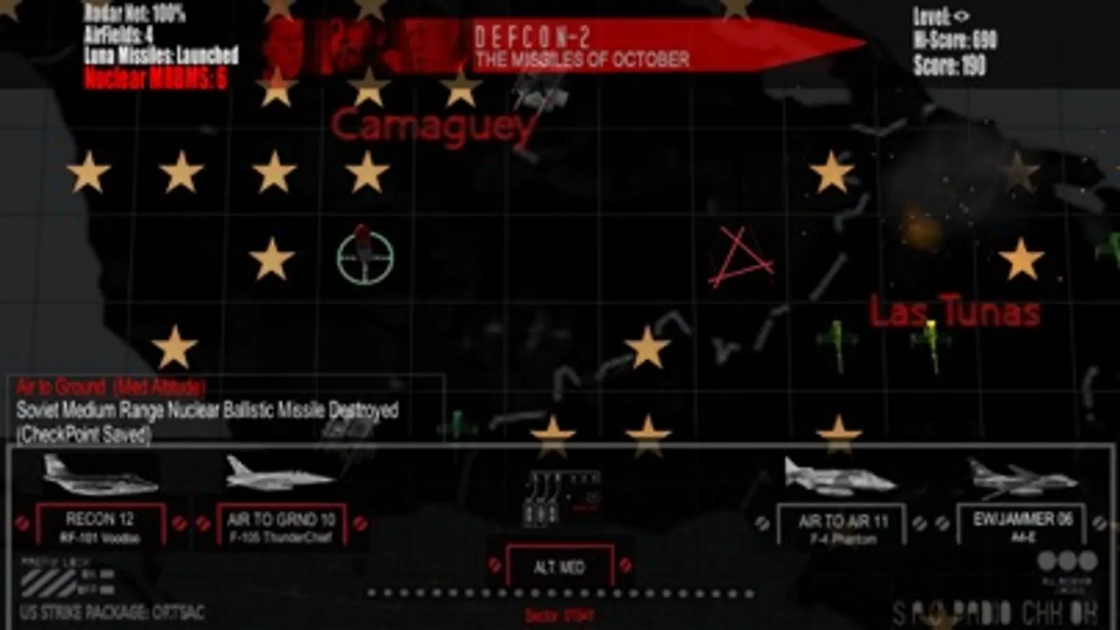 Take command of an OPLAN-312 Strike Package in a deadly race to locate and destroy the Soviet Nuclear MRBMs before they become operational and are launched against the US Eastern Sea-Board, Jam Radar Installations to reduce SAM effectiveness, Destroy Airfields to suppress MIG Patrols, Set Reconnaissance and Air To Ground Mission altitudes to minimize or avoid AAA fire. Locate and destroy the tactical nuclear Luna Surface to Surface Missiles before they're launched against the US Base at Guantanamo.