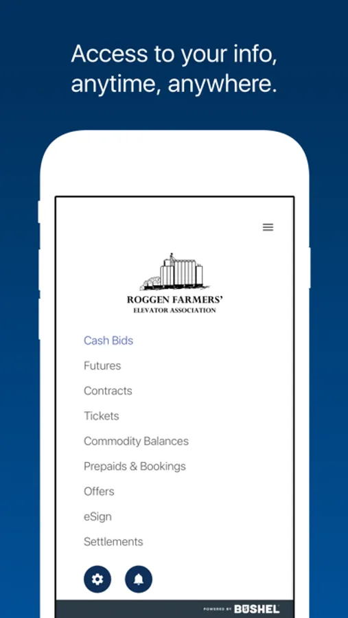 The Roggen Farmers' Elevator app is free, secure, and developed by the industry-leading Bushel platform.