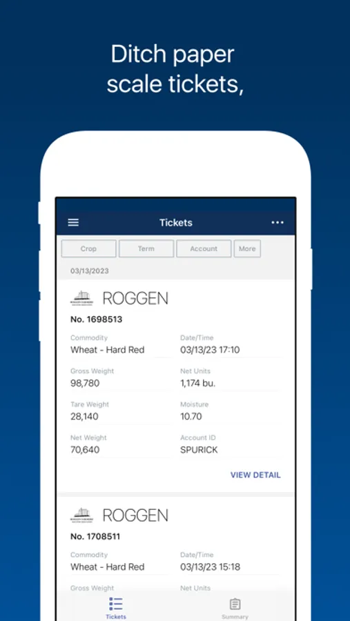 Scale Tickets: Easily access and filter scale tickets