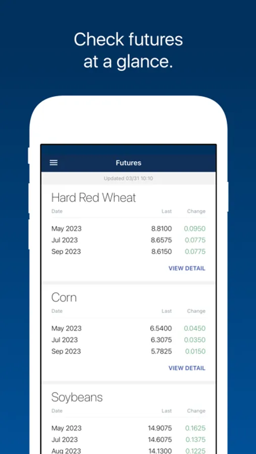 Futures: See Grains, Feed, Livestock, and Ethanol futures listed in order of your preference