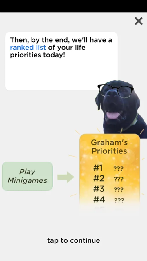 This is an experimental little game to help clarify your life priorities! This game is a work in progress. I hope it brings you value, and please share ideas/feedback with me at brett@mydogzorro.com. <3