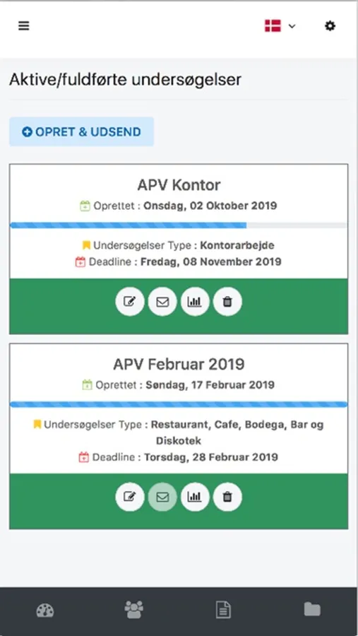Via AMOpartner har du det fulde overblik over dit arbejdsmiljø, og du kan nemt og hurtigt oprette og udsende de lovpligtige APV’er, med få klik. Systemet genererer automatisk statistik og fremhæver eventuelle indsatsområder, og kommer tilmed med løsningsforslag.