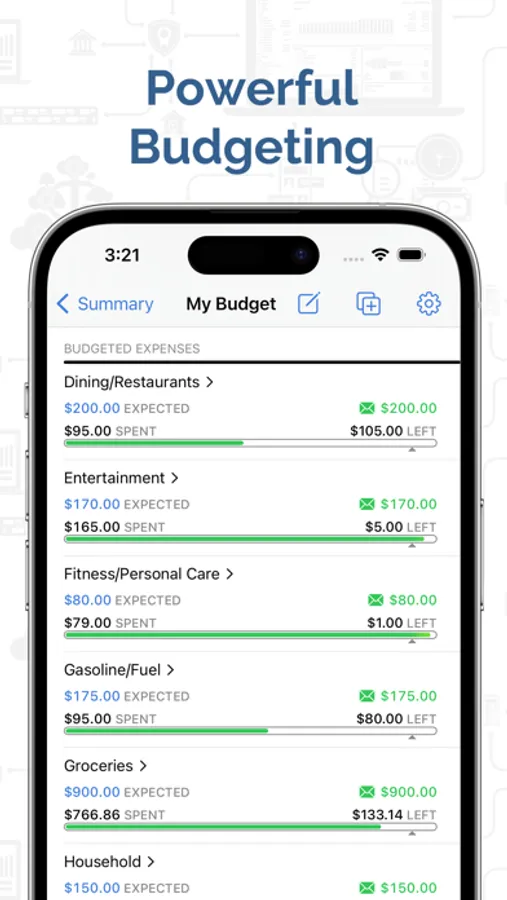 Banktivity automatically budgets scheduled transactions like paychecks and bills (categorized to your Envelope Budget). You’ll always know how well you’re tracking to your budget and savings with Banktivity’s visually-driven Budget vs. Actual reports.
