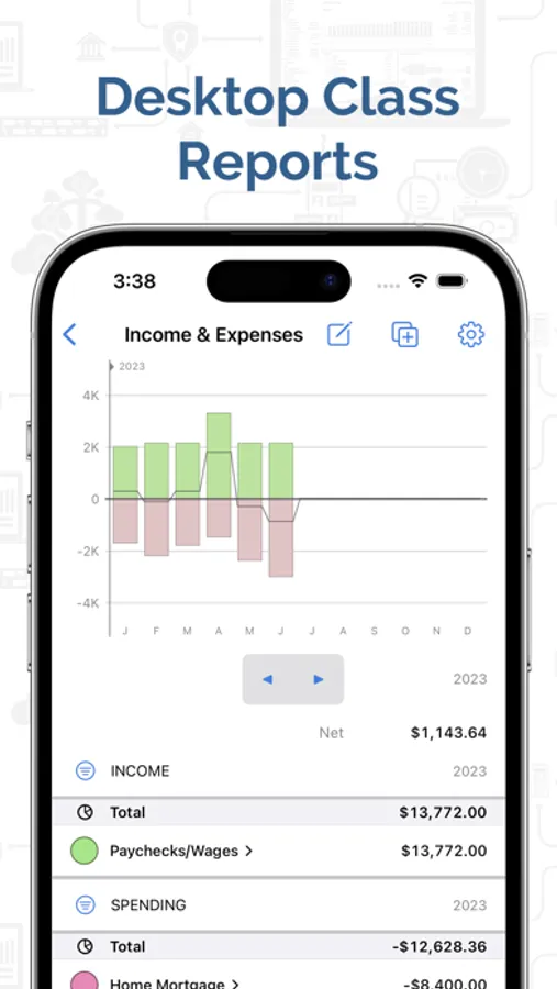 Built-in report templates (Income & Expense, Net Worth, Payee Summary and more) dynamically analyze your finances. Assign tax codes to transactions to generate Tax reports (or export to TurboTax). Or view holdings in the Portfolio or Investment Summary reports —presented in comprehensive graphics that let you drill down for details, export or print.