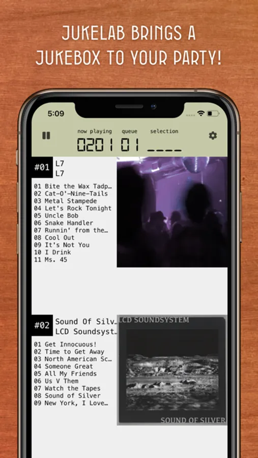 Pick one of our curated playlists to start a jukebox, then let folks browse through albums and pick songs to play. No more fiddling with the bluetooth, no more random tracks killing the mood!