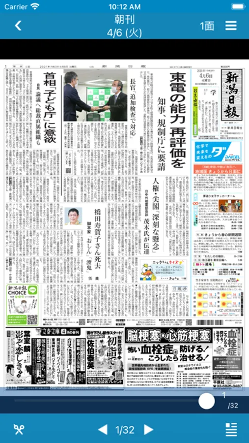 新潟日報朝刊、おとなプラスの紙面イメージや記事をスマートフォン、タブレットで閲覧できるアプリです。