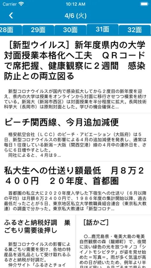 ・当日とは別に過去14日分の紙面を閲覧できます。