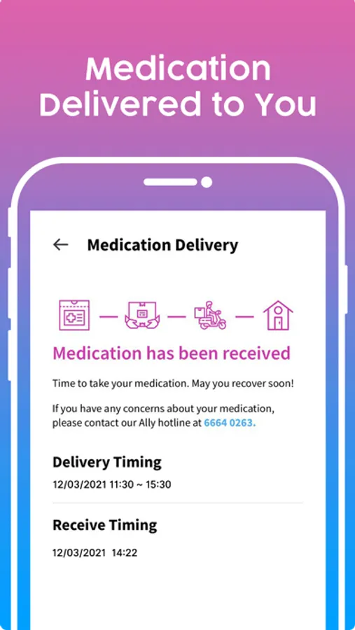 Step 3: After your video-consult, select a delivery time slot and have your prescribed medication delivered to you on the very same day. Access your medical summary of your prescriptions, medical certification and receipt in-app.