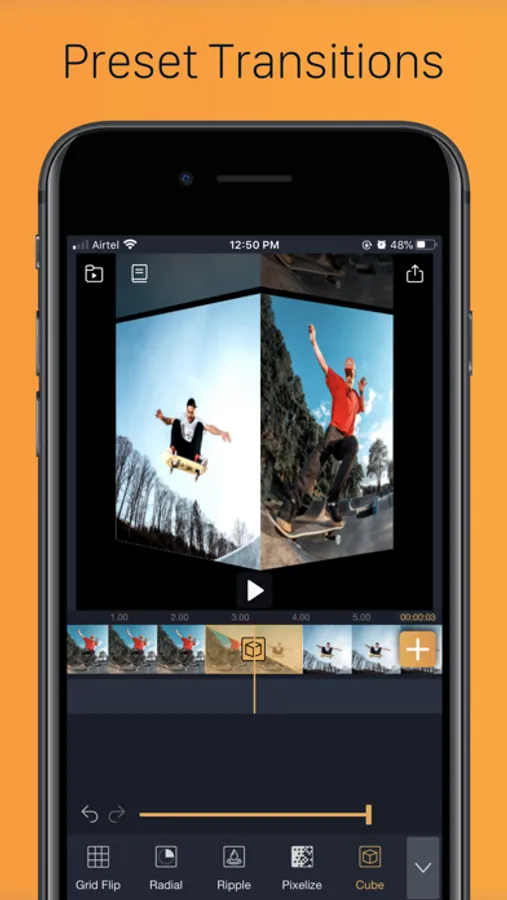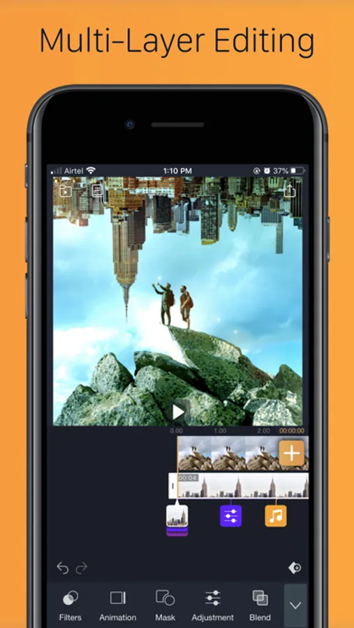 • Multi-layer & Multiple clips timeline support to add clips, merge clips, add text on video, add filters and effects.