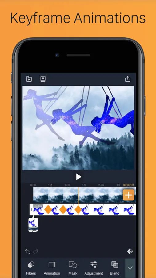 Keyframe Animation adds movement to any object like masks, images, effects, text and stickers.