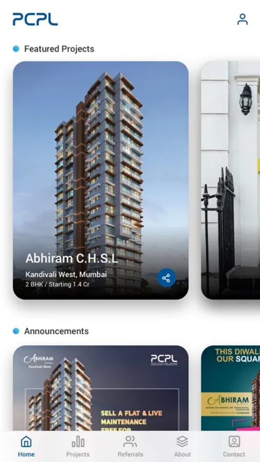 PCPL brings you 100% visibility on new and redevelopment project update, announcements of new projects and Promotions by PCPL, here are the features and functionality of this application.