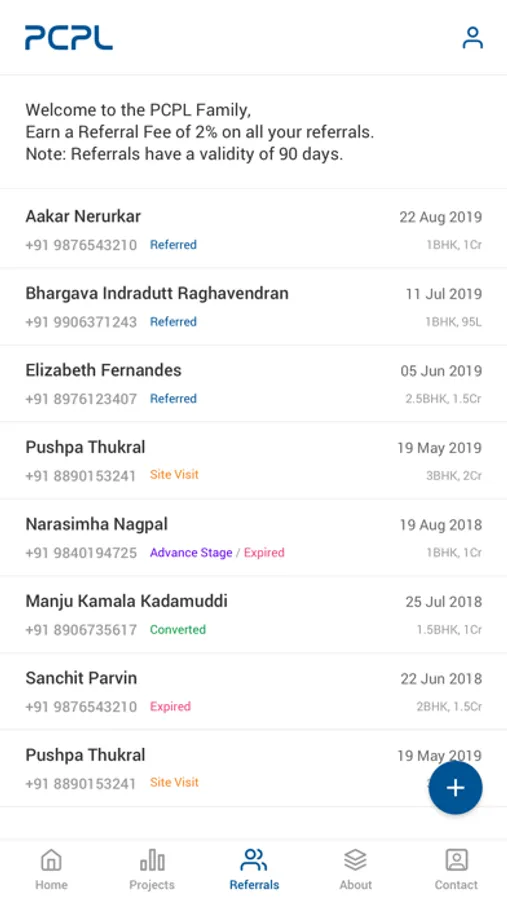 - Track the status of each referral you add via the referral status (Referred, Site Visit, Advance Status, Converted & Expired)