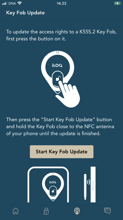 With iLOQ S50 Mobile Application you can power-up and open compatible batteryless smart locks with NFC enabled iPhone.