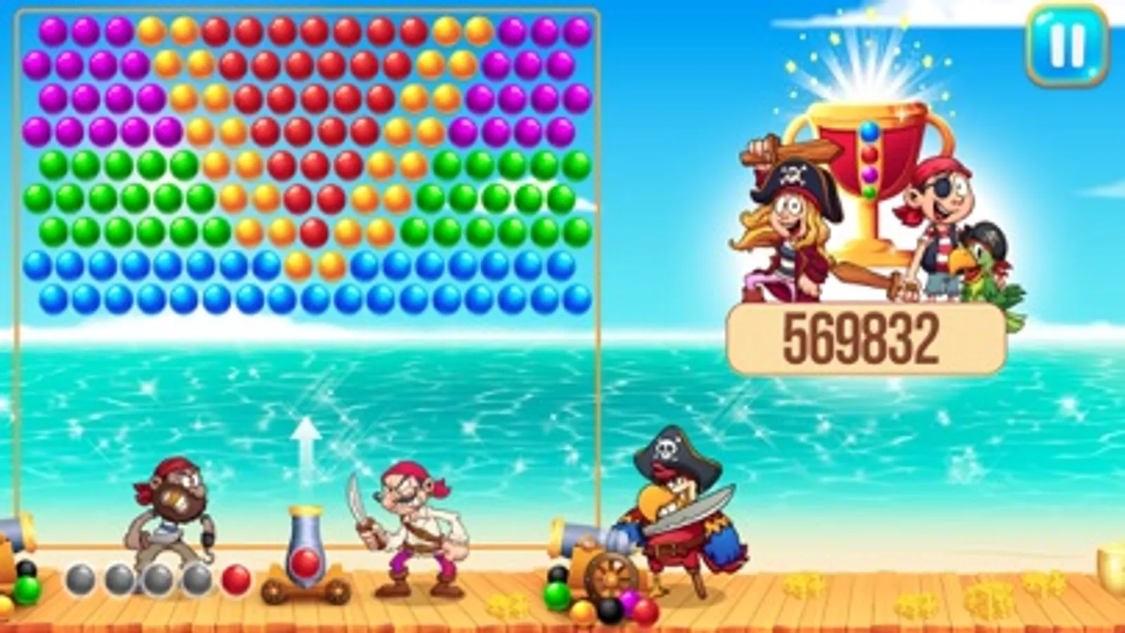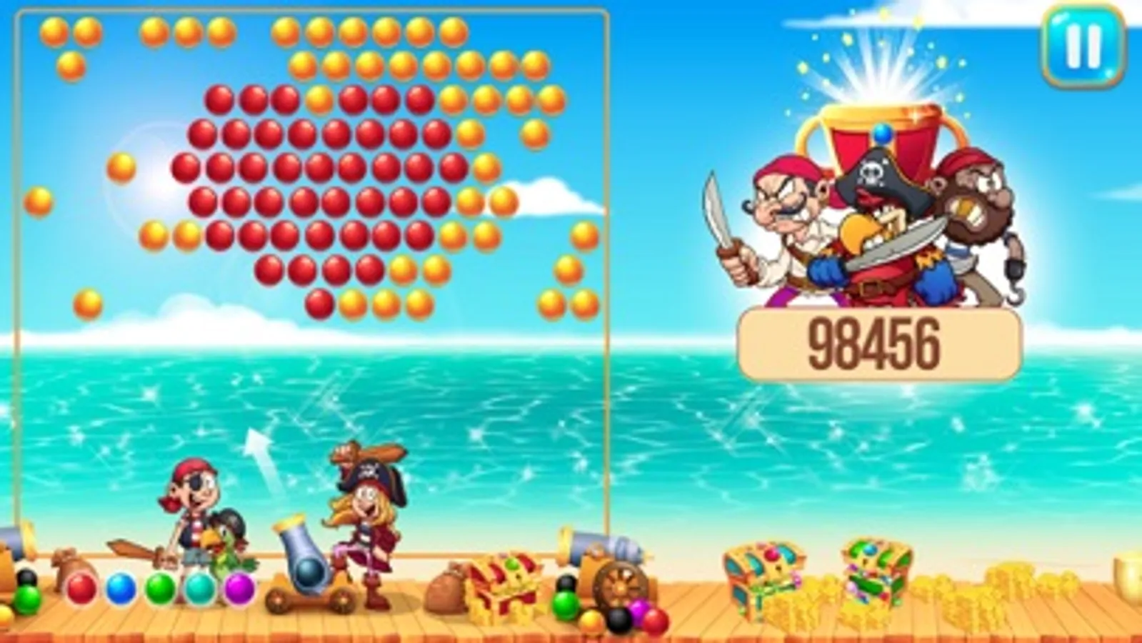 Use your cannon to shoot port or starboard at bubbles and to sink opposing pirate ships.