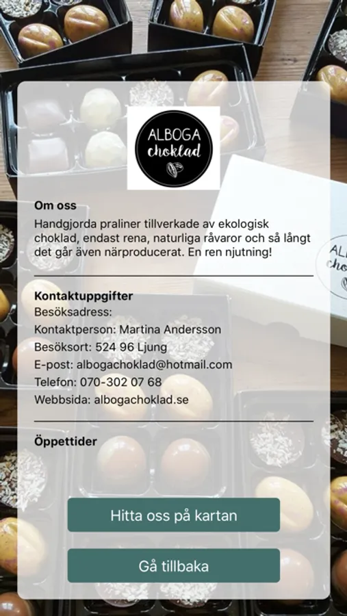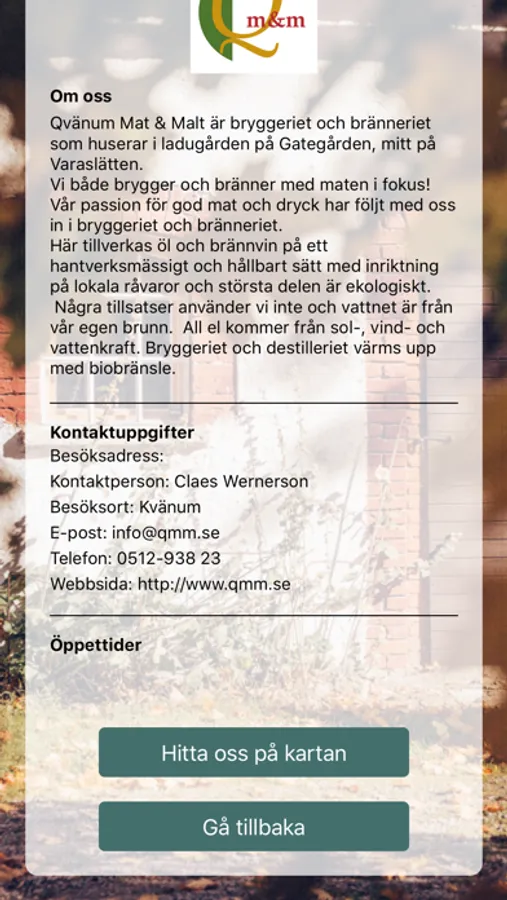 Genom att använda kartan i appen som visar dig vägen till ditt mål så kan du också hitta information om produkter, kontaktuppgifter och öppettider till det företag du vill besöka. Detta är ett ovärderligt verktyg för dig som älskar lokalproducerade livsmedel och restauranger nära dig.