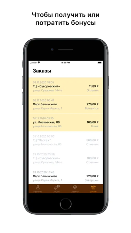 Приложение позволит Вам стать участником программы лояльности: нужно всего лишь ввести номер телефона, получить и указать проверочный код – и Вы готовы получать и копить бонусные баллы, чтобы пользоваться ими в свое удовольствие.