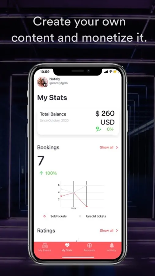 • Influencers schedule live virtual events, defining the price and amount of tickets.