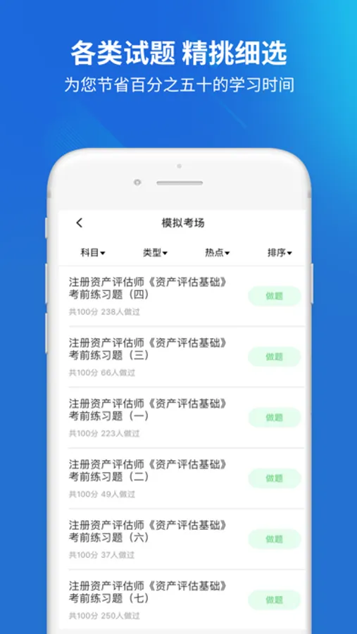 资产评估师APP是一个针对注册资产评估师考试的题库,涵盖了该考试热点、难点和常考点的考试模拟题库,是您学习和拿高分的好帮手。