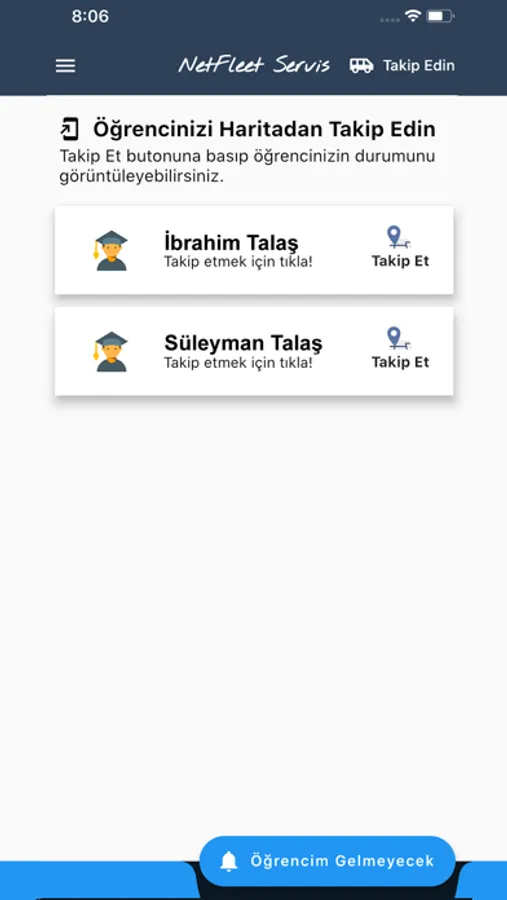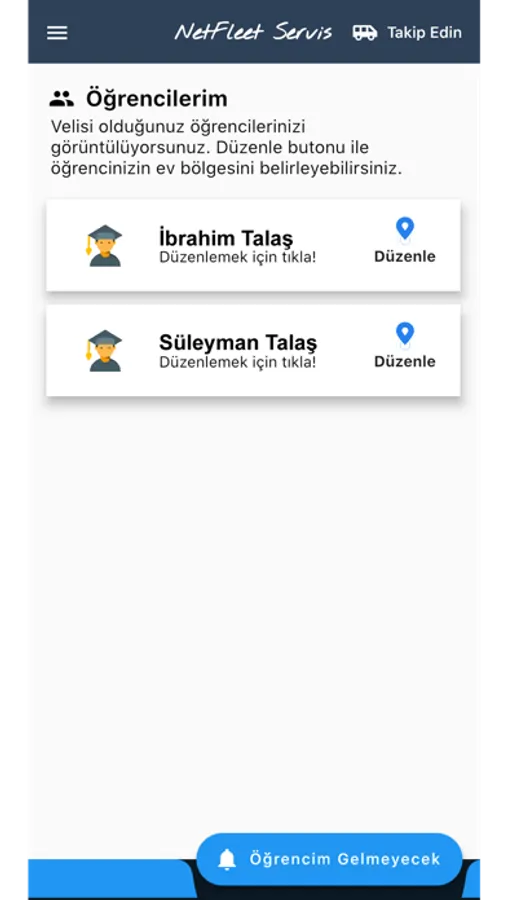 Yerlem Umay uygulamasını kullanan okul servislerindeki öğrencinizi kolaylıkla takip edebilir ayrıca servisiniz ev bölgenize veya okul bölgenize giriş yaptığında bildirim alabilirsiniz.
