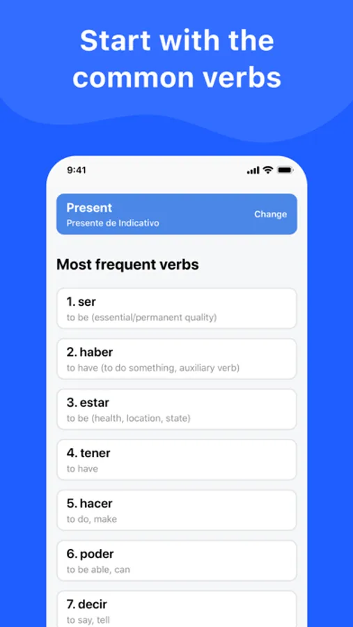 • Select a verb and tense