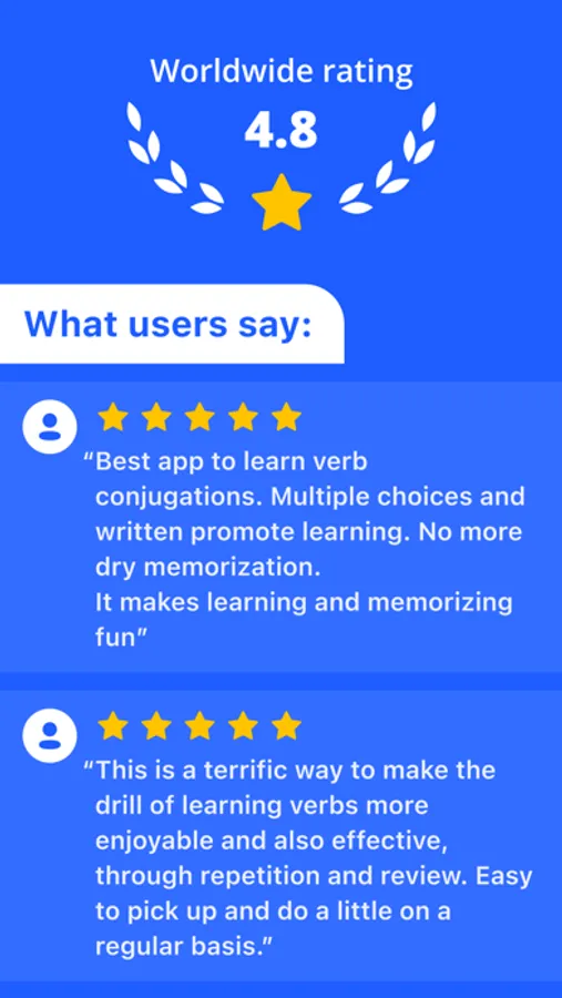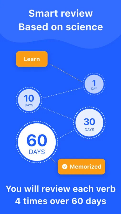 • Review verbs after 24h, 10 days, 30 days and 60 days (spaced-repetition algorithm).