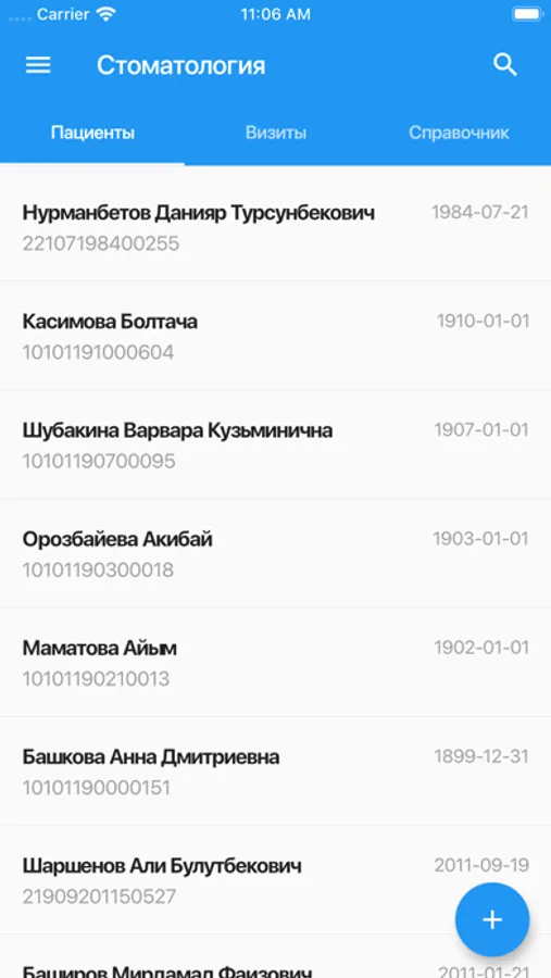 Так же в приложении можно просматривать историю визитов и весь список пациентов этой поликлиники где врач зарегистрирован.