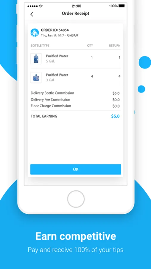 The first on demand drinking water delivery app on the market. We will deliver your 5 gallon purified drinking water within 24 hours. No more scheduled deliveries. We will deliver your water when you want and where you want. No more false billing, pay as you order. No contract needed.