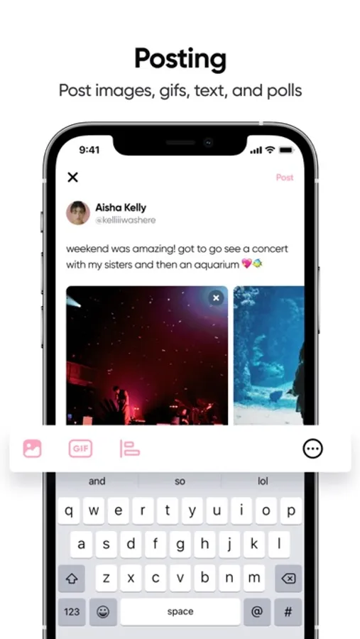 - Repost, share, and reply to posts or upload Gifs with our Gif feature