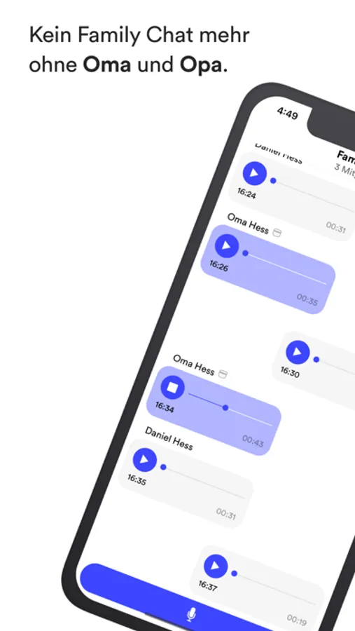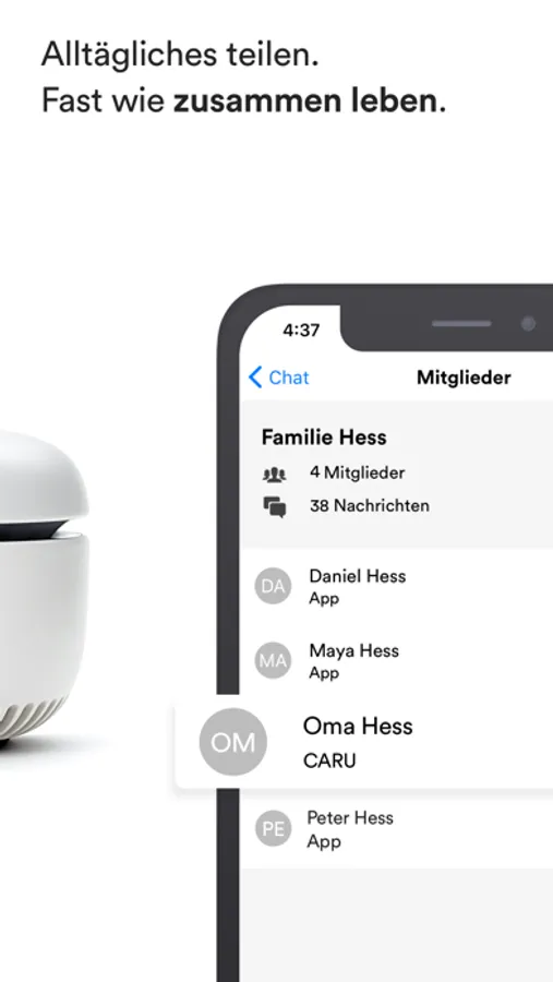 Mit Sprachnachrichten Alltägliches einfach und jederzeit miteinander teilen: Du via Smartphone und Oma und Opa über CARU.