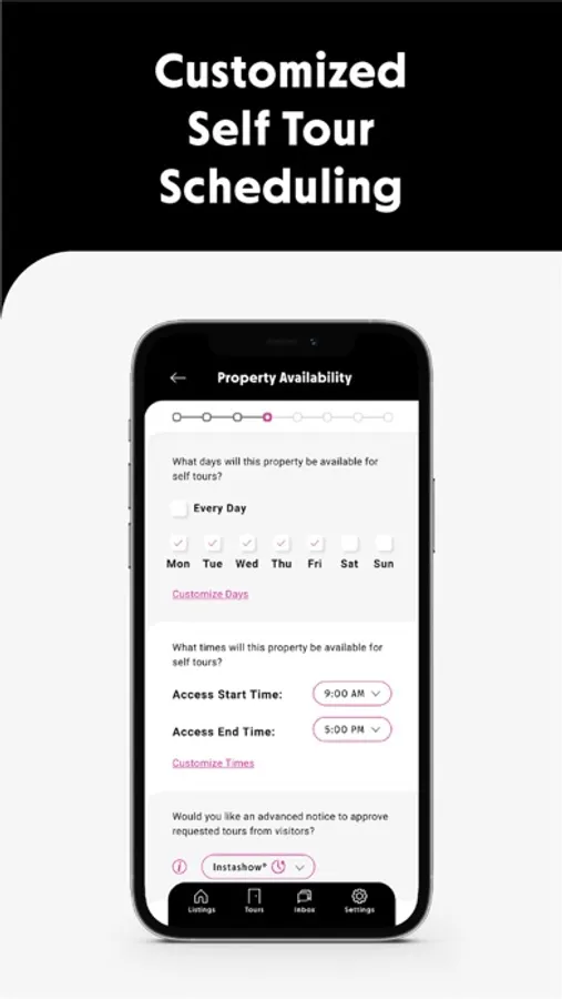 • Property managers, decide exactly what days and times the property will be open to self-tours.