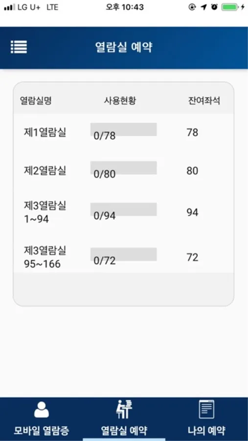 안동과학대학교 모바일 좌석예약시스템입니다.