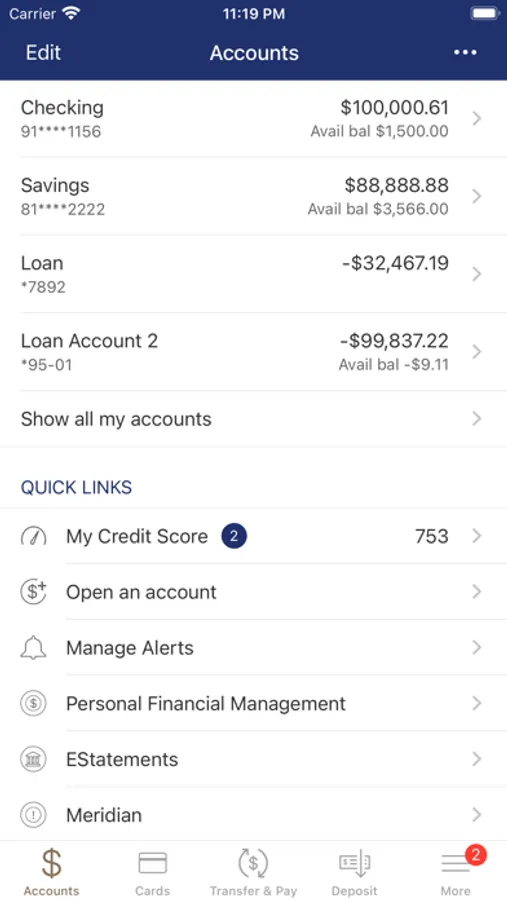 Access your accounts when and where you want right in the palm of your hand. It’s fast, secure and free access to your accounts anytime, anywhere. You have access to check your balances, pay bills and transfer money...while you are on the go!