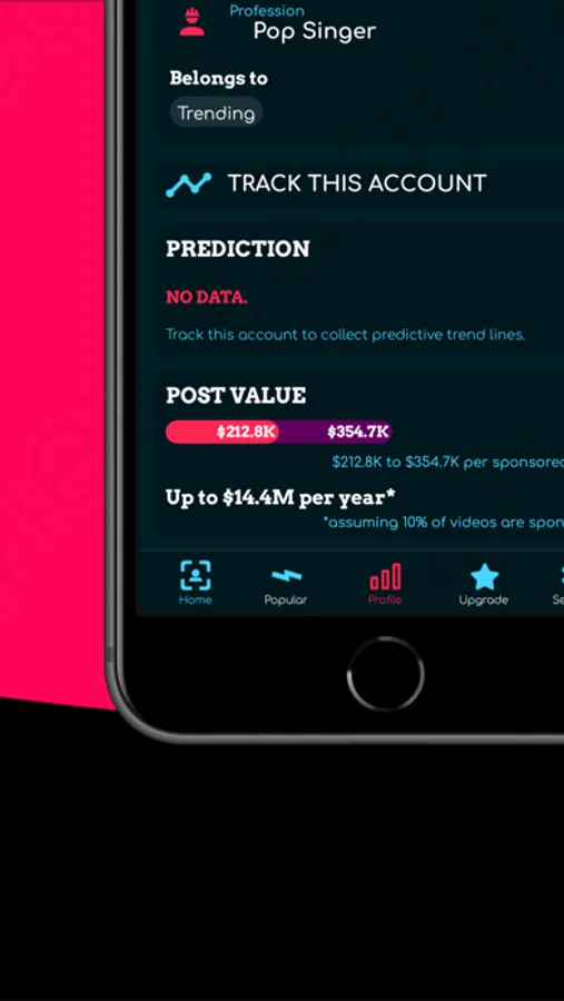 Find the social value of any public TikTok profile - instantly. See engagement metrics, compare accounts, estimate how much money the account is worth. Using 1000’s of data points including views, likes, comments, fan interest, historical data, etc, compared across a broad spectrum of similar accounts and the community at large, we can estimate fairly accurately how much an account is worth.